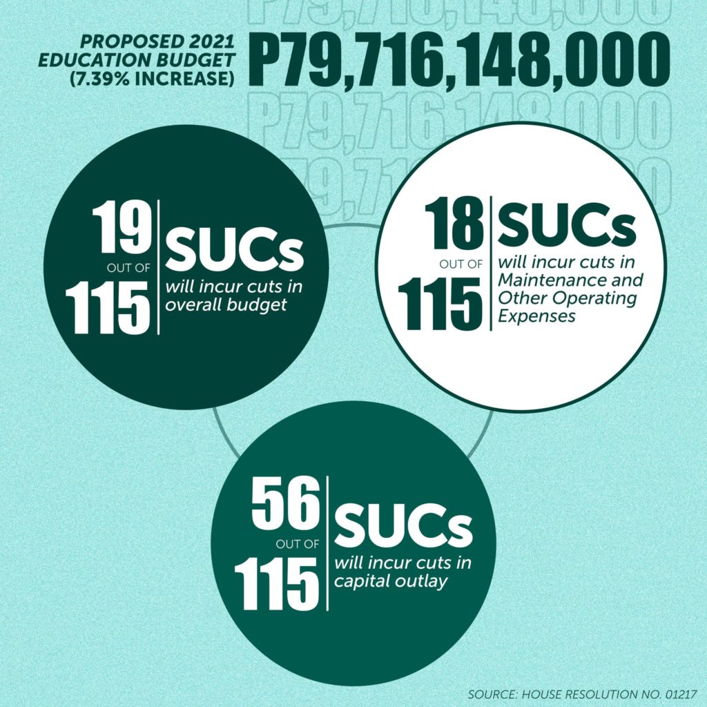 The resolution underscored the necessity to restore the cuts made in the 2021 budgets of SUCs to ensure quality and safe learning. Among the items that suffered a decrease are the Maintenance and Other Operating Expenses (MOOE), Student Financial Assistance Programs, and the subsidy for Medical Students.