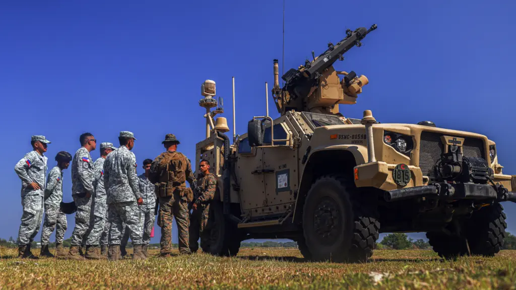 U.S. Marines trained Philippine Airmen on the Marine Air Defense Integrated System during Balikatan 25 at Naval Station Gantioqui, April 24. The drill featured live-fire demos of U.S. and Philippine air defense systems. (US Marine Corps photo by Cpl. Iyer Ramakrishna. This image is used under non-commercial terms. The DoD does not endorse this publication.)