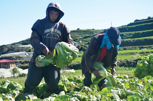 FILE PHOTO. Farm workers in Sitio Englandad, Barangay Paoay, Atok, Benguet clean wombok heads of frost-burnt leaves. Frost affects these vegetable farms from December to February when the temperature is at its coldest. (Aldwin Quitasol)