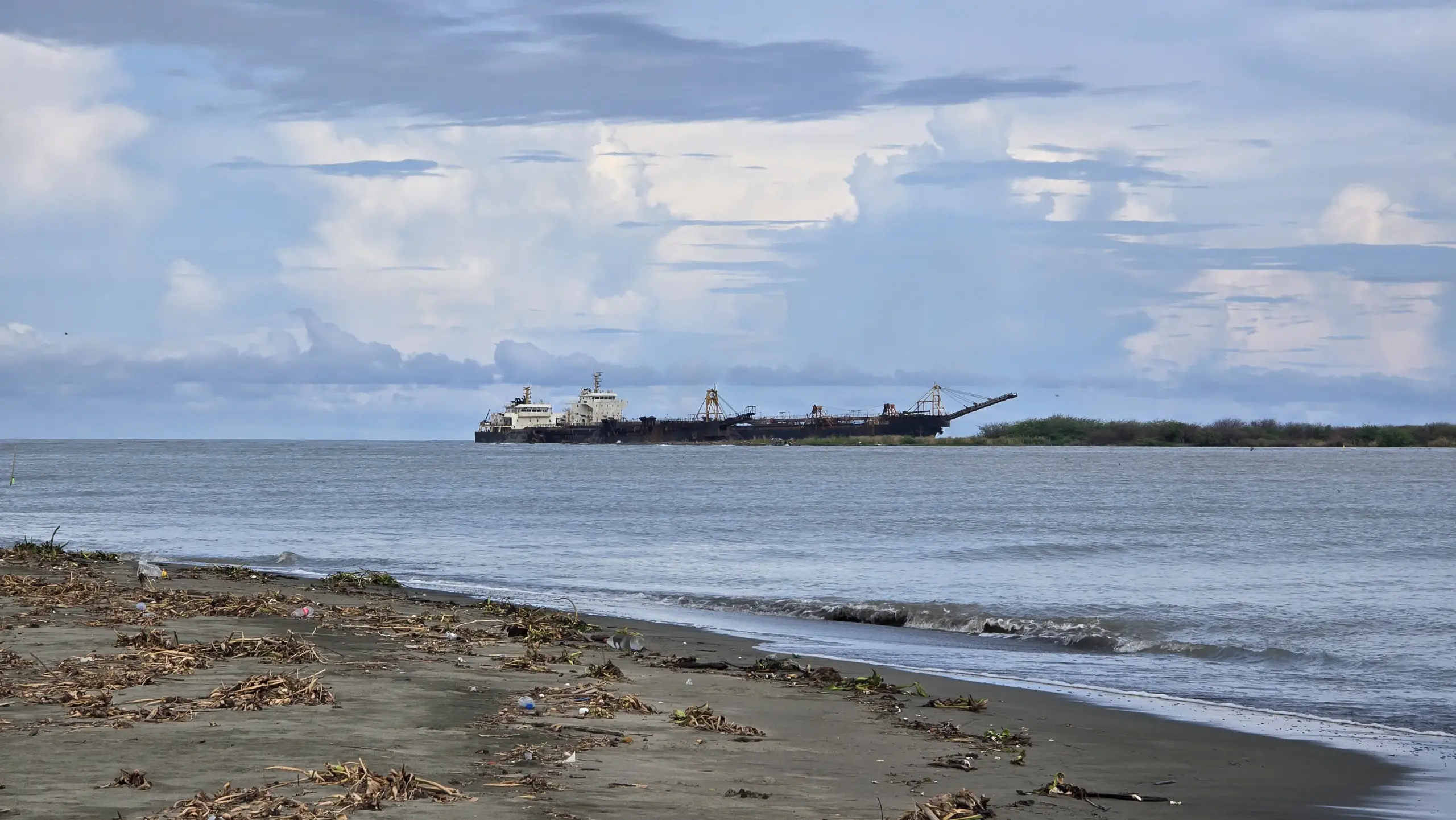 BEHEMOTH. One of the dredgers operating in the mouth of the Abra River is anchored in the town of Caoayan, where several communities are reporting dwindling catches, vessel noise, and worsening coastal erosion. (Sherwin De Vera)